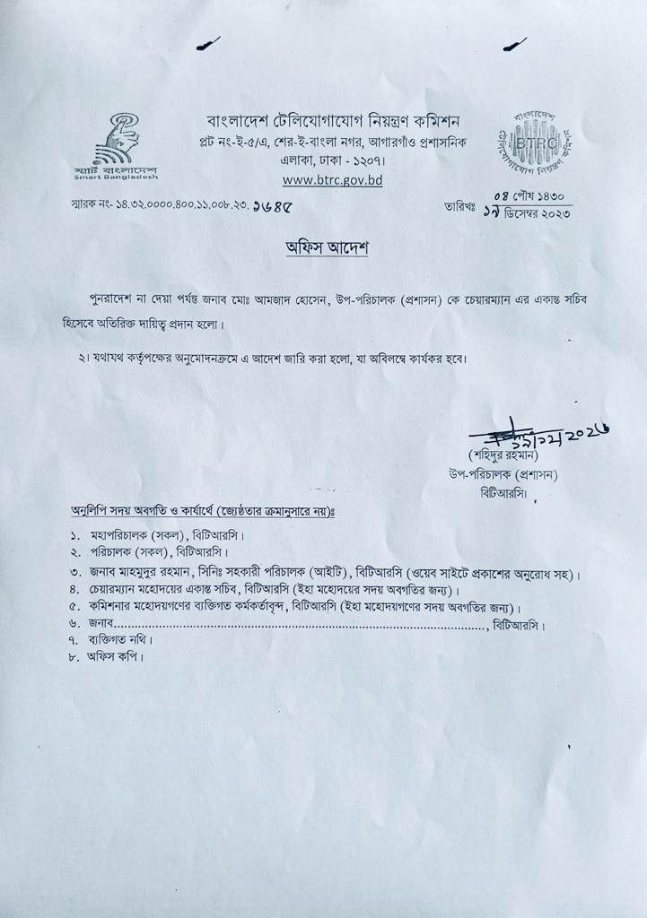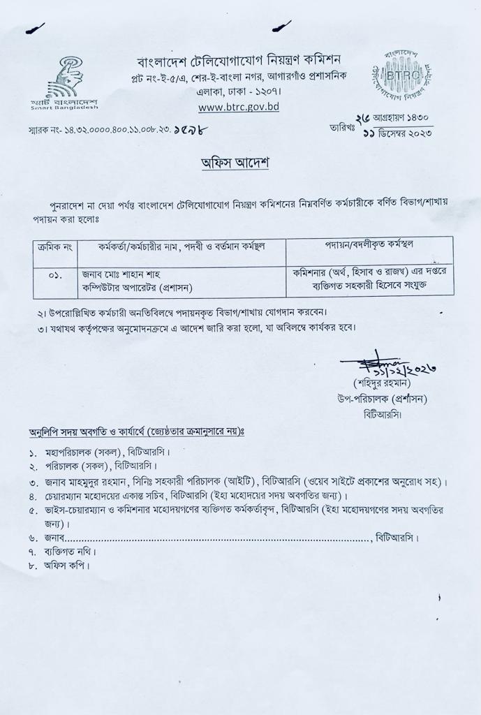 | ১৩/১২/২০২৩ | নং ১৪.৩২.০০০০.৪০০.১১.০০৮.২৩.১৬১২ | পদায়ন |  |